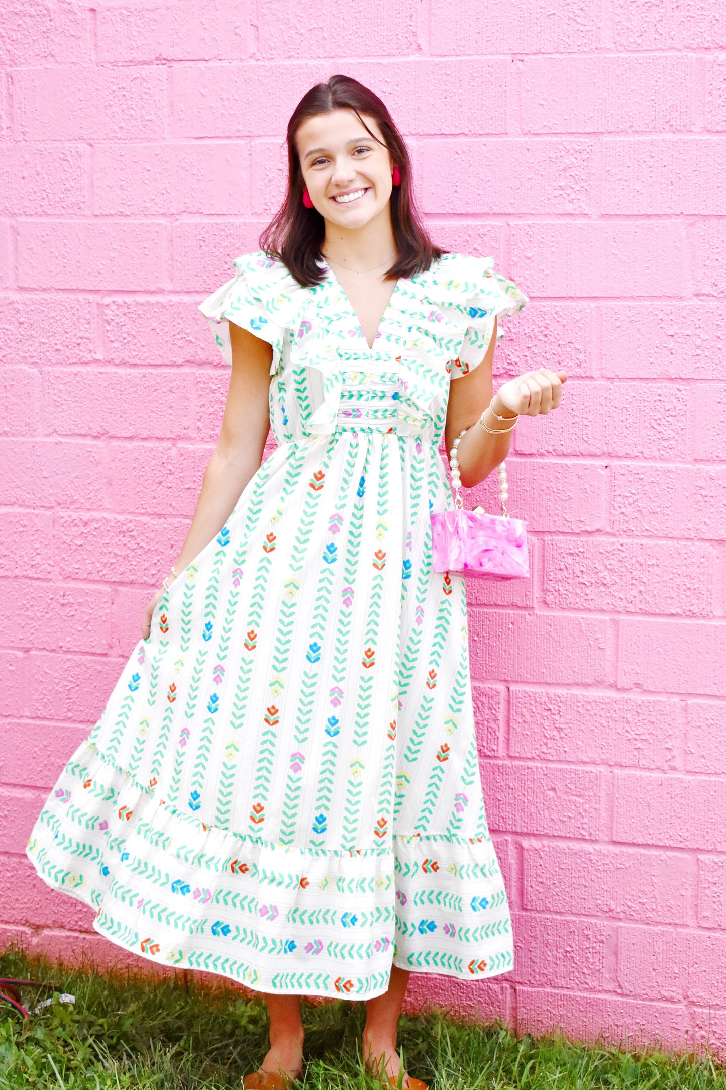 2. Pink & Green Striped Beanie