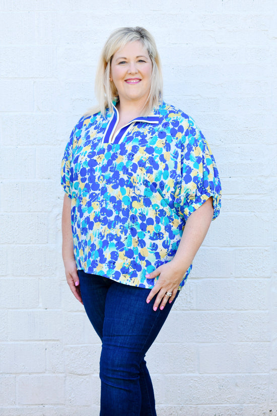 9. Plus Green Floral Contrast Trim Puff Sleeve Blouse