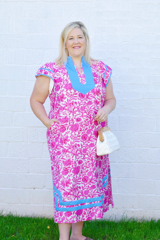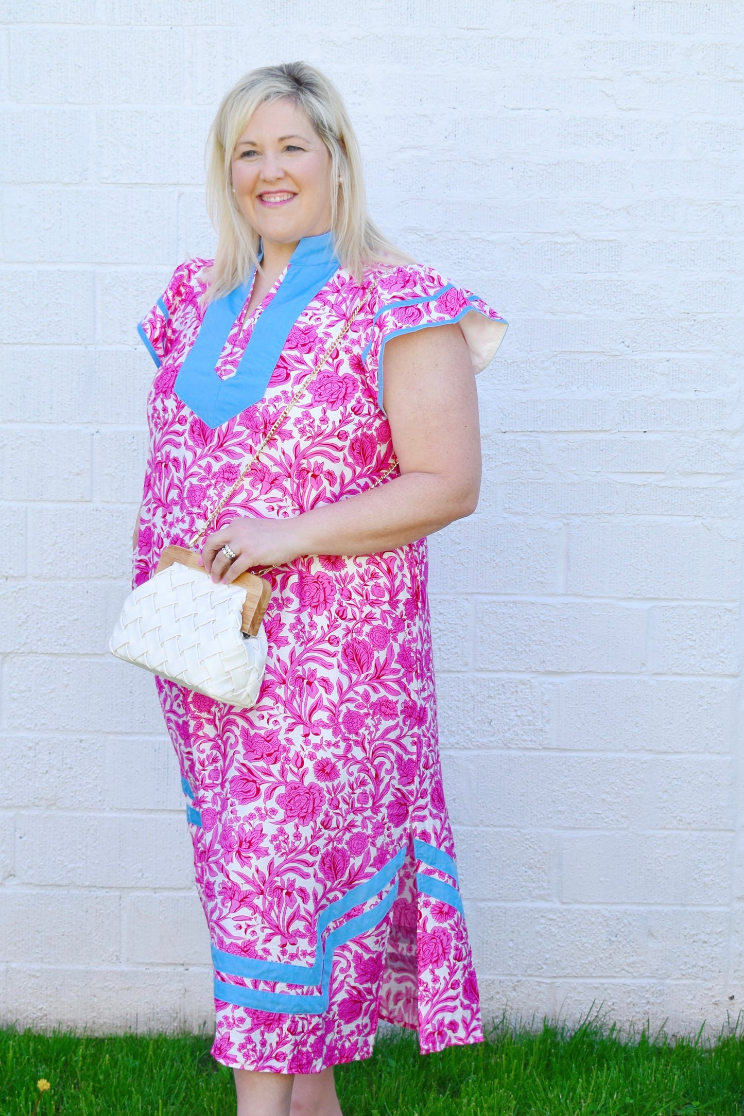 20. Plus Pink Floral Ruffle Sleeve Midi Dress