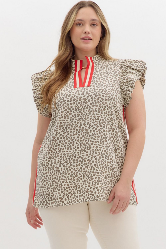 5. Plus Fall Floral Ruffle Contrast Blouse